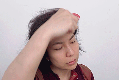 像我这种短发更好梳,在头皮蹭蹭两下发根就能支棱起来,有蓬松的自然感。小西瓜头发很厚,也是一梳就顺滑。