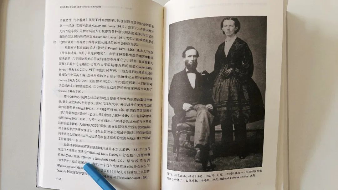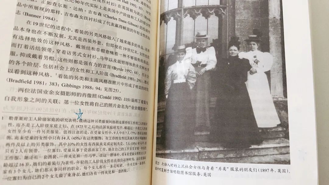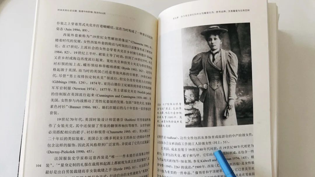 “中产阶级女性对裤装的广泛接受似乎是由其中的边缘群体(特别是女同女权主义者)发起的。”