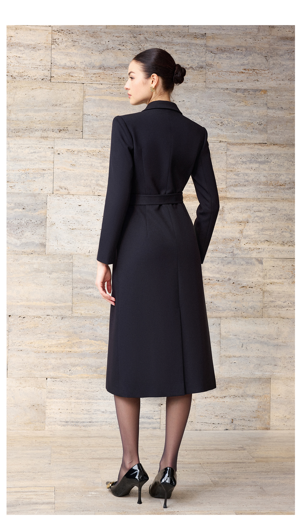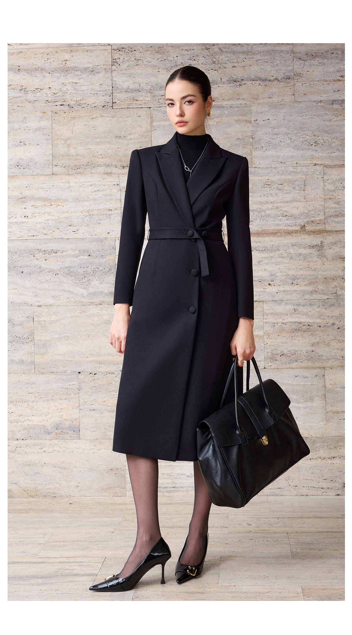 利落翻领衬出天鹅颈,收腰绑带刚好掐出腰臀比,走路带风都自带气场~