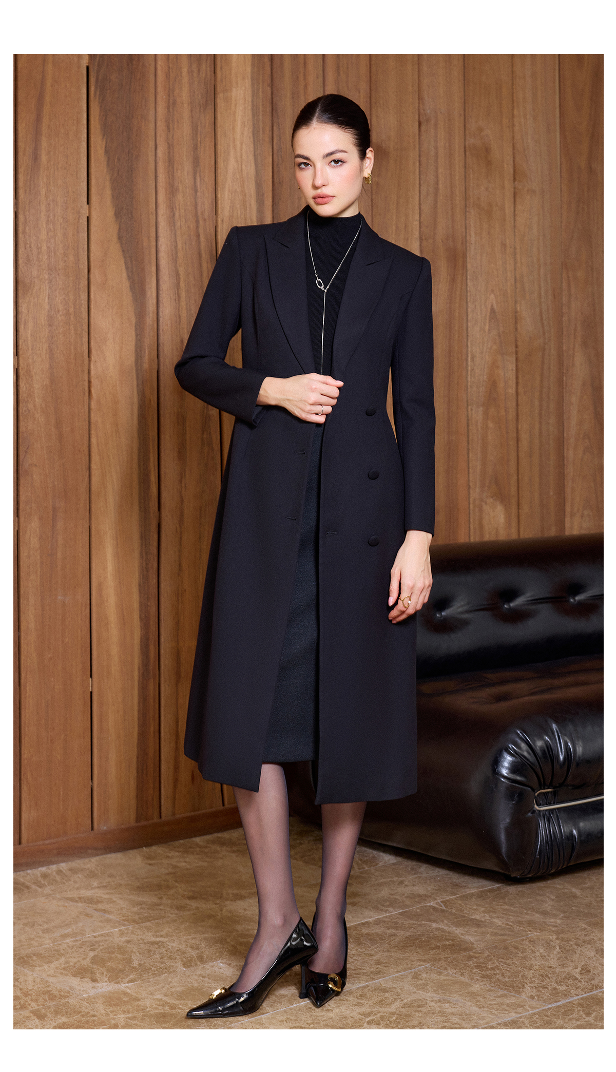 双排扣 + 侧开衩,抬手不局促,迈步也优雅,随便挎个黑包就显贵。