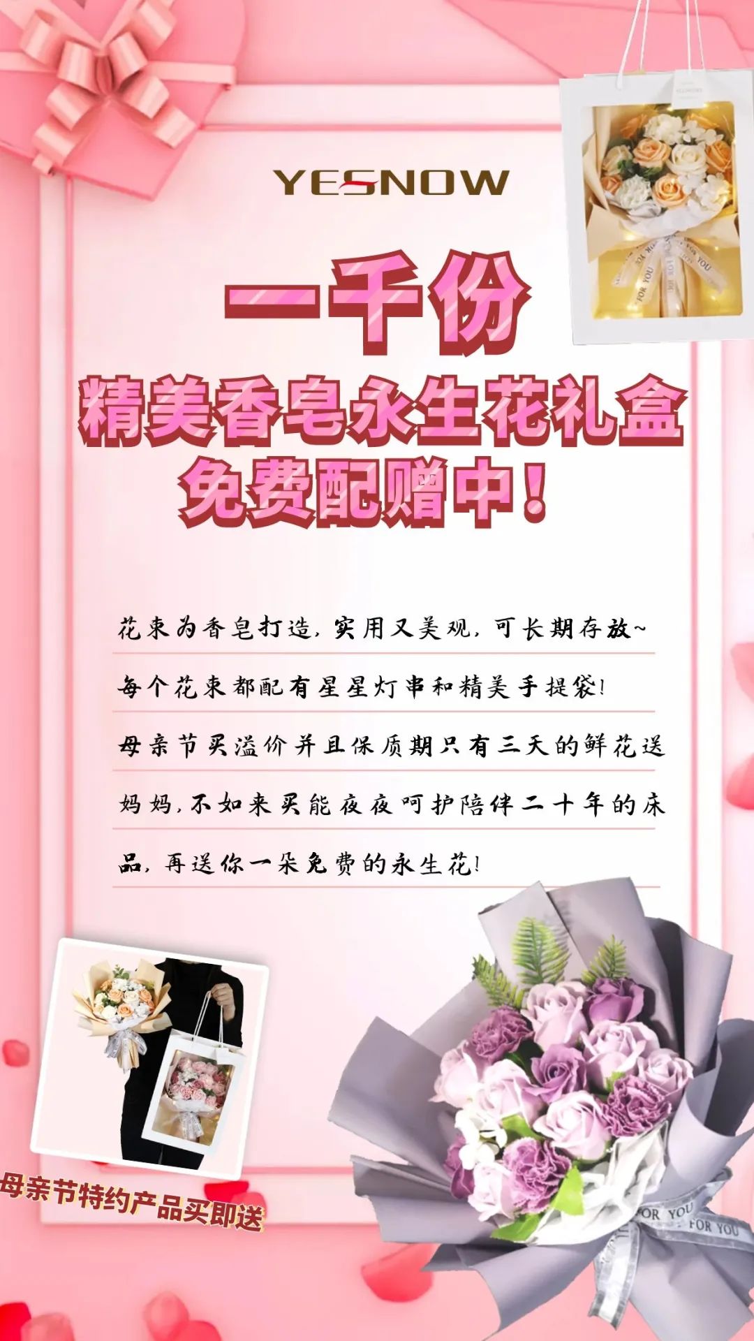 【母亲节专题】一千份精美香皂永生花束免费配赠中!