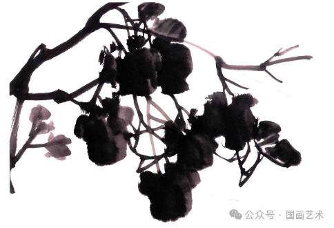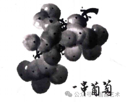 画水墨葡萄要注意前后、上下的层次,前面的葡萄粒要浅—些,后面的要深一些。小串枝用浓墨画出,要穿插有力,布局合理,笔墨要厚实、稳健,忌漂浮、直白。↓↓↓