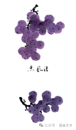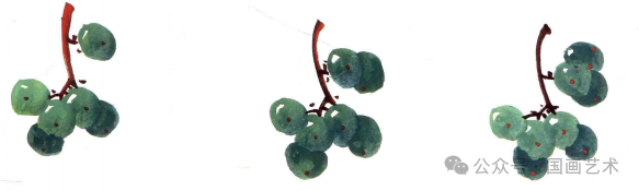 用笔蘸或浓或淡的墨或颜色,一笔点厾出葡萄颗粒。↓↓↓