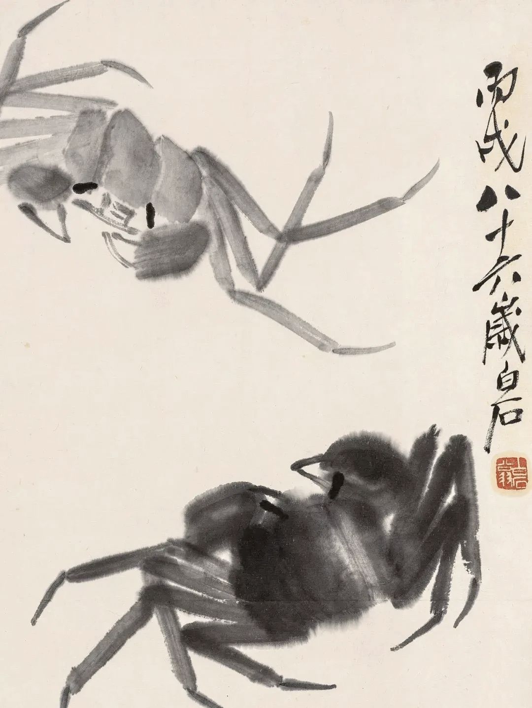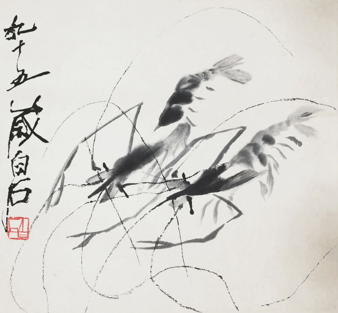也可以数一数,是不是像齐白石说的,每只虾的身子都有6节?等到一眼不眨地清点完,果然,盆里不论大虾小虾,没有一只虾是5节或者7节的。