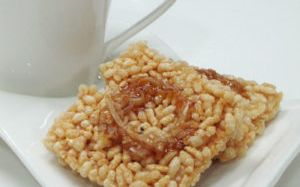 5.趁热把掺有椰子丝的椰糖浆淋到炸熟的锅巴米香上。