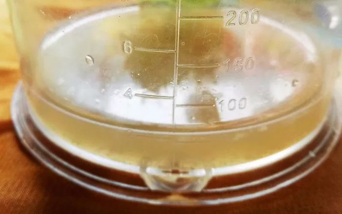 1. 梨子压出梨汁,取50ml 虑掉梨渣,再将冰糖提前弄碎。