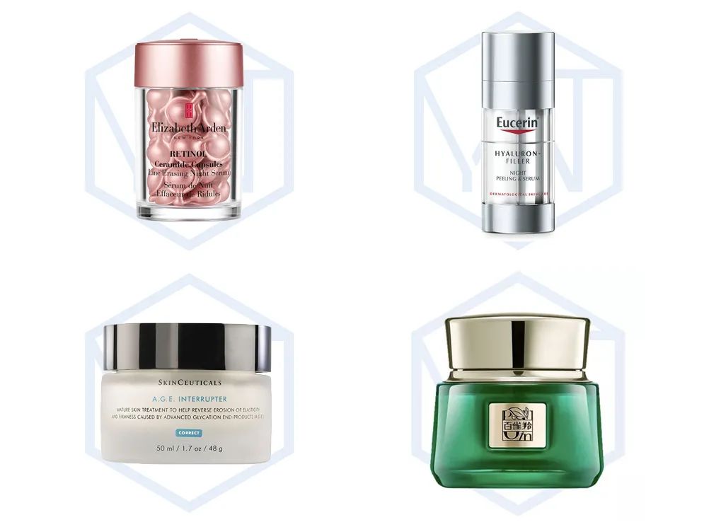 【其他抗老产品推荐】雅顿粉胶(适合干皮)、优色林充盈展颜夜间焕肤双管精华(适合油皮)、修丽可紧致塑颜面霜、百雀羚帧颜淡纹修护精华霜。
