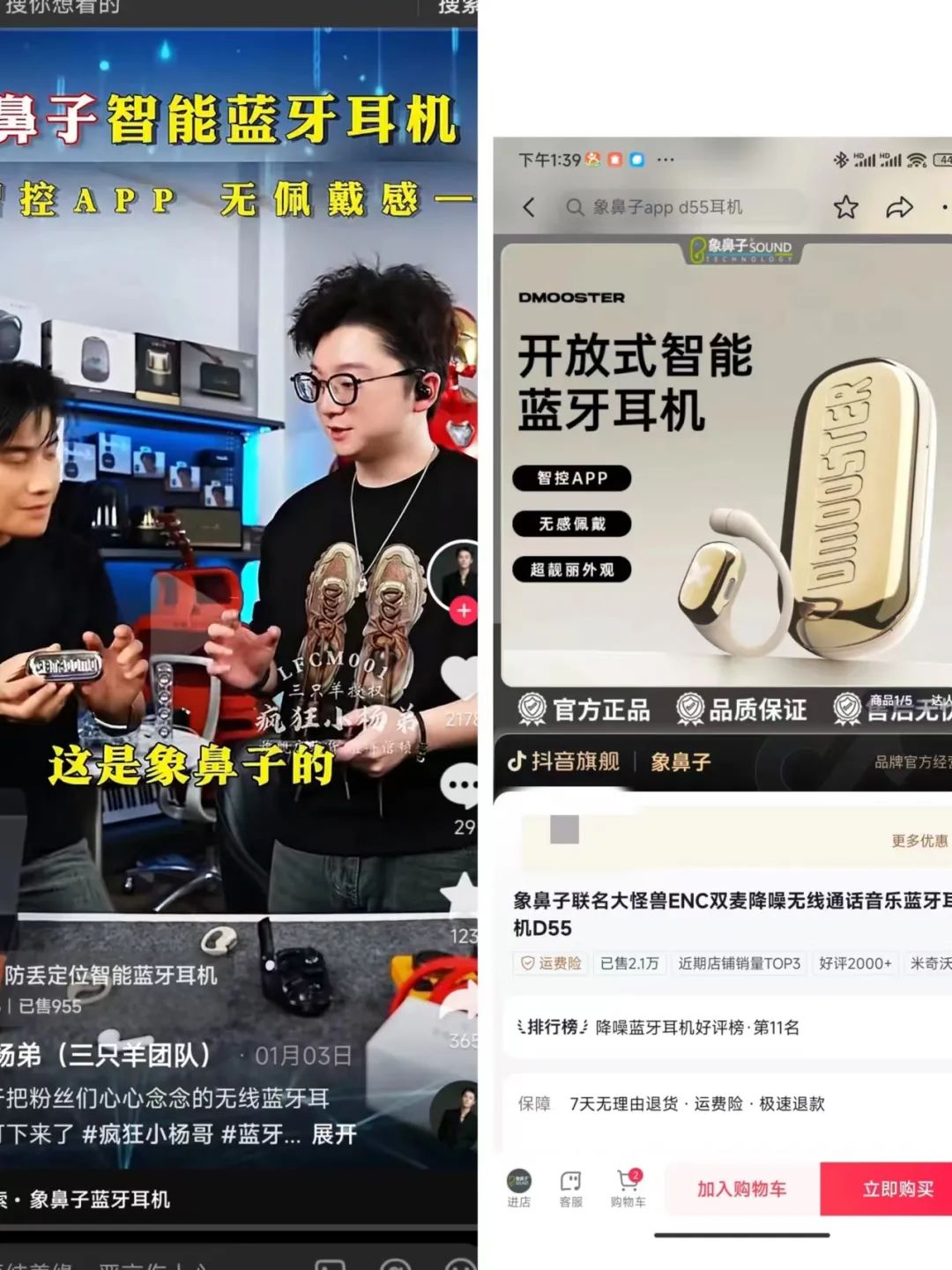 这次的这款D55pro 蓝牙耳机,是与D.mooster(大怪兽)一起做的联名系列,一经推出就成了大爆款,各大抖音数码头部主播相继推荐!