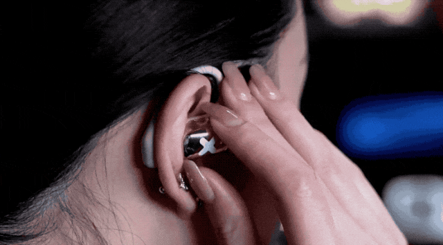 佩戴方式也是非常简单拿出耳机往耳朵上一挂就好了,而且挂耳处的软硅胶是按照人体结构设计的,使得耳机更能贴合耳部,可适配不同耳形。