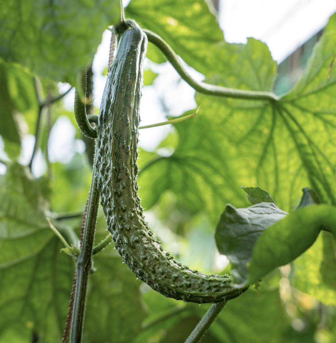 灵丘基地春季的头茬黄瓜成熟了,姿态各异的平人黄瓜正是自然生长下的「松弛感力证」。