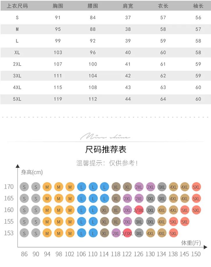 码数超全,86-150斤均可找到适合自己的尺码,喜欢修身或者oversize的都可随心选,具体尺码对照表如下: