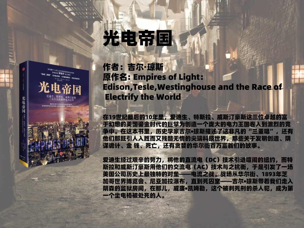 1888年的纽约,煤气灯依然闪烁在城市上方,但“电”的奇迹已经萌发。谁能掌握这种把黑夜变成白昼的技术,谁就能创造历史——并且获得巨大的财富。