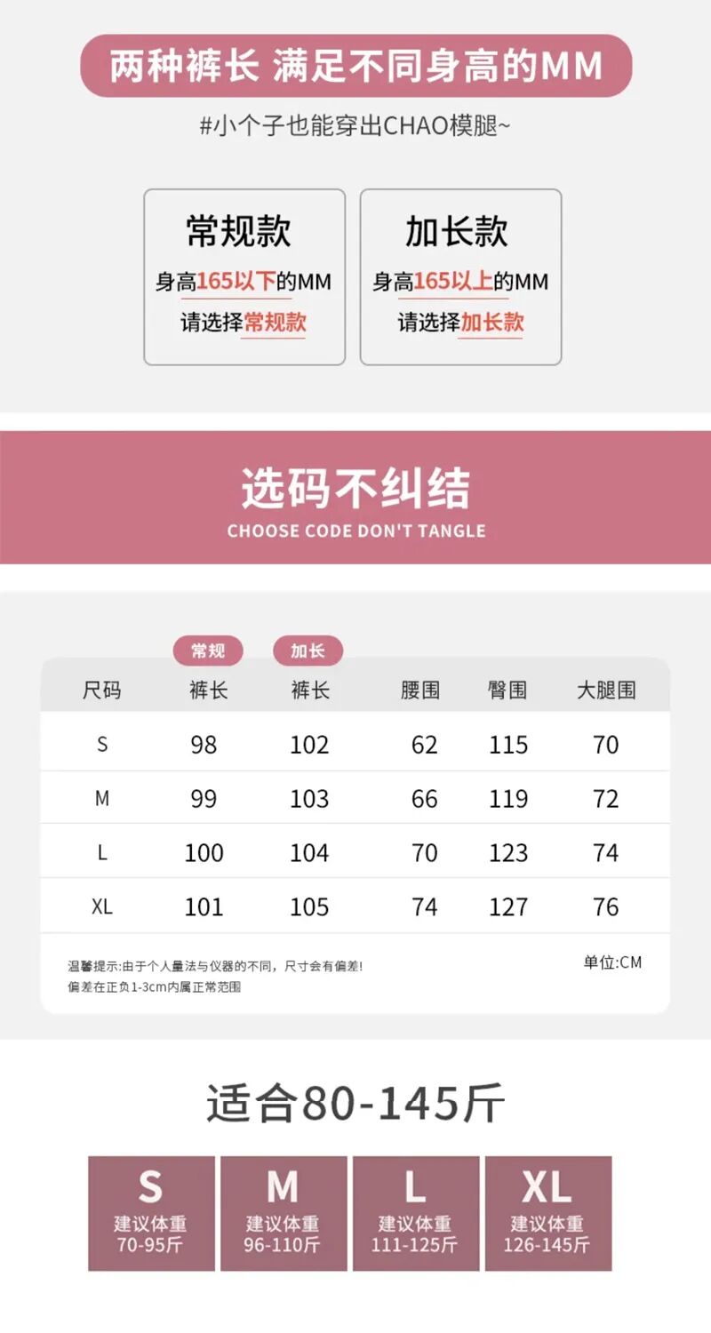 裤子做了S-XL的尺码,有常规款和加长款