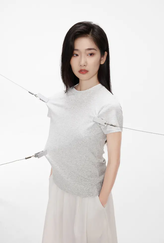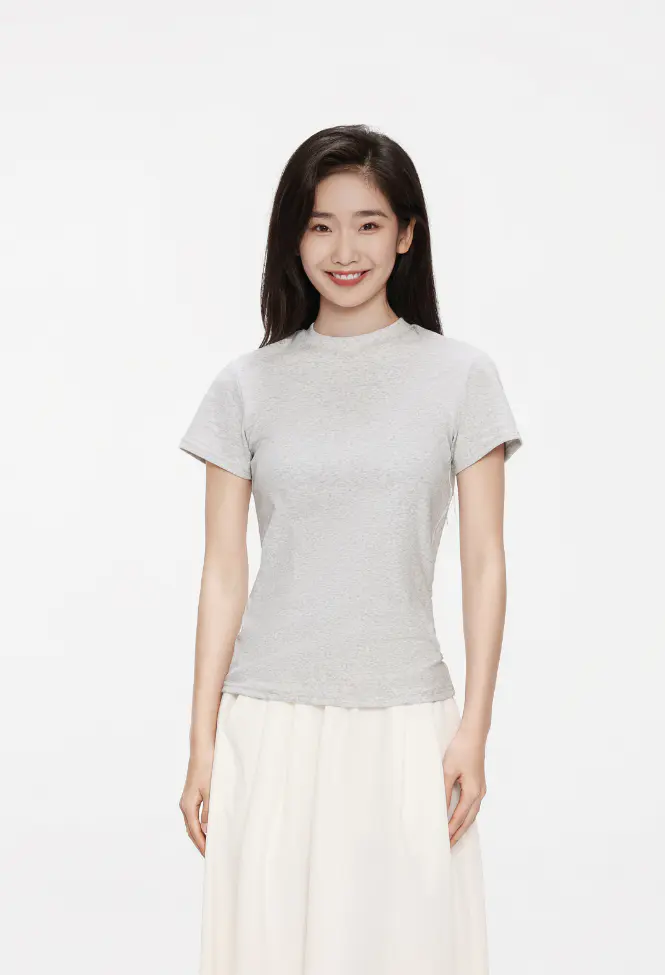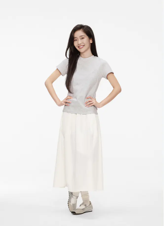 花灰色短T➕白色半身裙好甜好温柔!!
