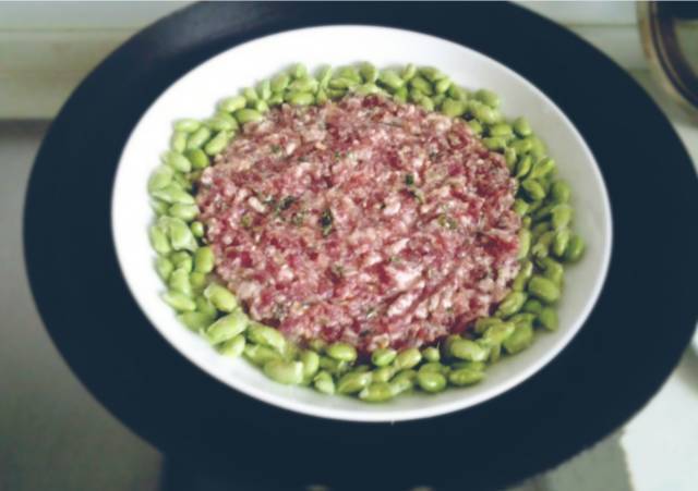肉馅半斤,猪前槽肉为好,毛豆仁2两;