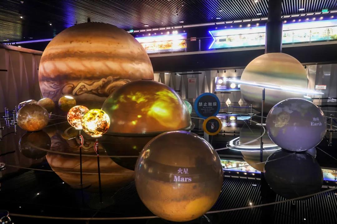 在前往FAST之前,为了有更好的知识储备,孩子们在这之前会参观平塘国际天文体验馆。