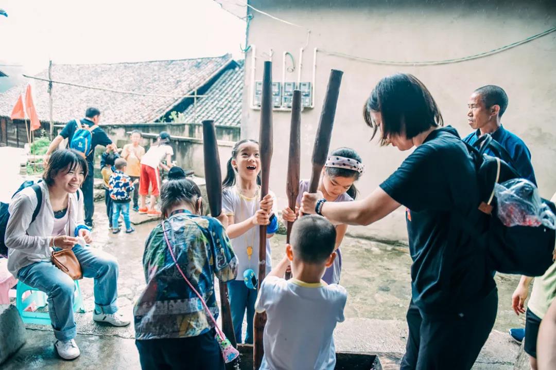 孩子们还能在村寨、农田间,体验农活、磨玉米粉和投喂家禽。