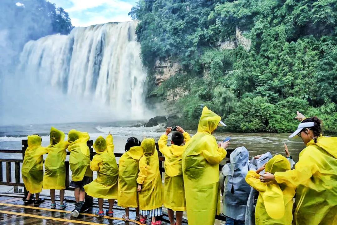 在这里,孩子们可以近距离欣赏黄果树瀑布的壮美。
