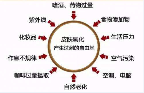 比如自由基能够使,循环代谢减慢,造成内部细胞代谢减慢,四肢细胞因为不能很好的代谢产生热量,从而出现手脚冰凉、怕冷的现象。而皮肤细胞循环下降,代谢减慢瘀滞,储水能力减弱,造成皮肤干燥,失去弹性,出现黄褐斑、暗沉和皱纹等。有专家表示,自由基所积累的毒素可能是衰老的根本原因。