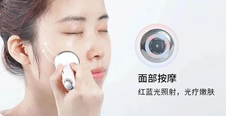 面部按摩头:搭配红蓝光疗嫩肤技术,通过不同波长的红蓝光,起到提拉紧致、光学嫩肤的效果,堪称“掌上美容院”,在家轻松做美容!