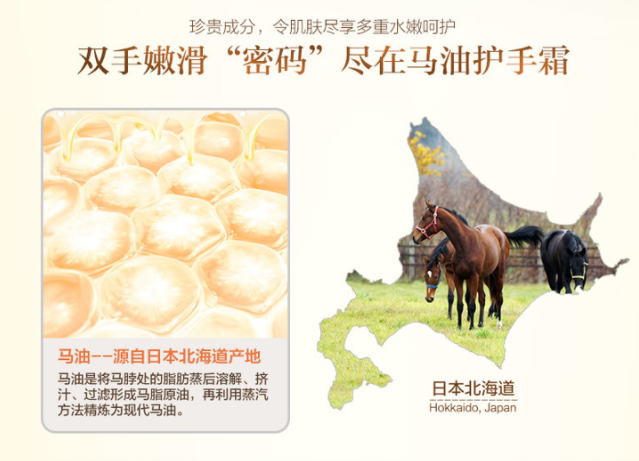 马油是日本北海道的特产,是将马脖子处的脂肪蒸后溶解、挤汁、过滤后形成马脂原油,再利用蒸汽方法精炼为现代马油!