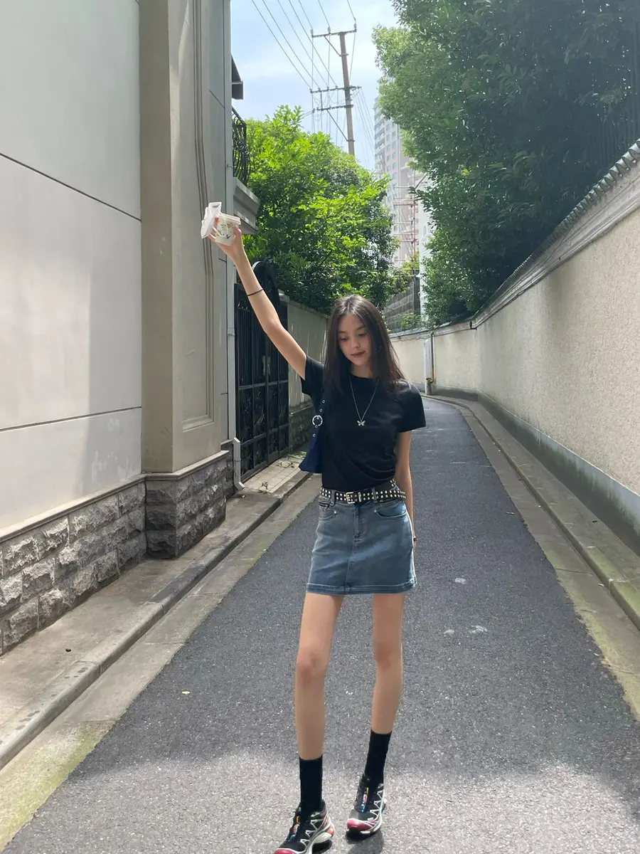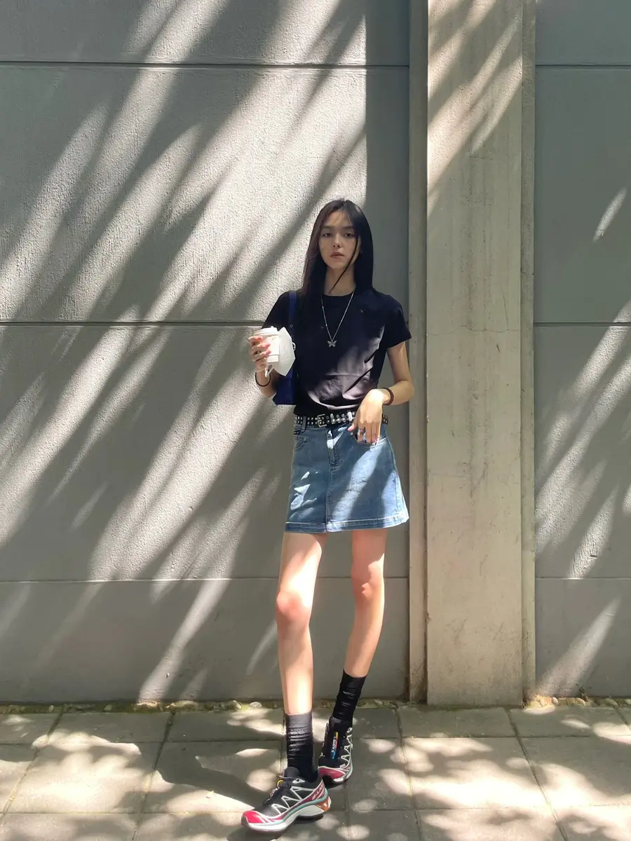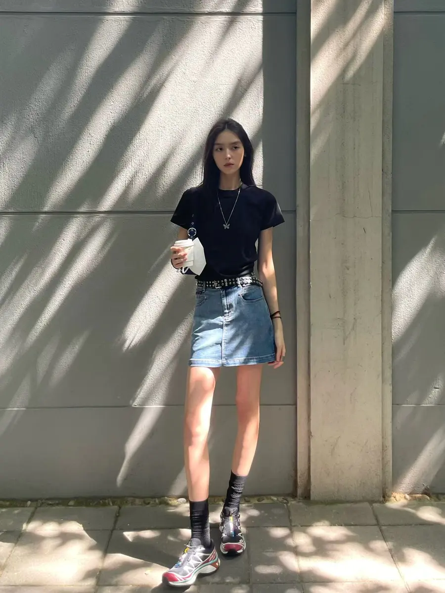韩系OOTD | 纯色t+牛仔半裙,干净舒适风💞
