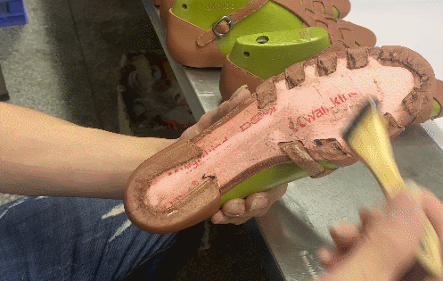 从鞋带到鞋面,再到鞋子的成品,都只能由师傅手工完成,非常费时!一个师傅一周,大概只能做出50-60双编织凉鞋(普通鞋子一周大概能产出100双)!
