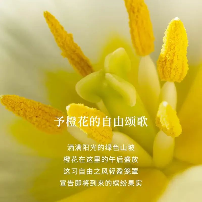喷出来有一点辛辣,然后是沉静又凛冽的木质香,一点点恰当甜味中和了冷感,是个有个性的香调,男女均可。给我的感觉,就像站在屋顶上俯瞰城市夜景,星空、灯光闪闪。当你享受片刻凝视沉思之时,一阵温和的微风轻抚并包裹着你~后面与皮肤温度融合后,逐渐柔和,变得温柔很多,花香也逐渐明显,让你不由生发出感到安心。橙花精油夹杂着枝叶的苦涩青绿喷薄而出,橙花精油的加入,中和涩意,多了些柔软丰腴。细细品味越来越觉得,像夏日路过果园时,橙树繁茂,橙花盛开,树上蝉鸣喧嚣,热烈明朗。▷醉心柠香(柑橘芳香草本调)