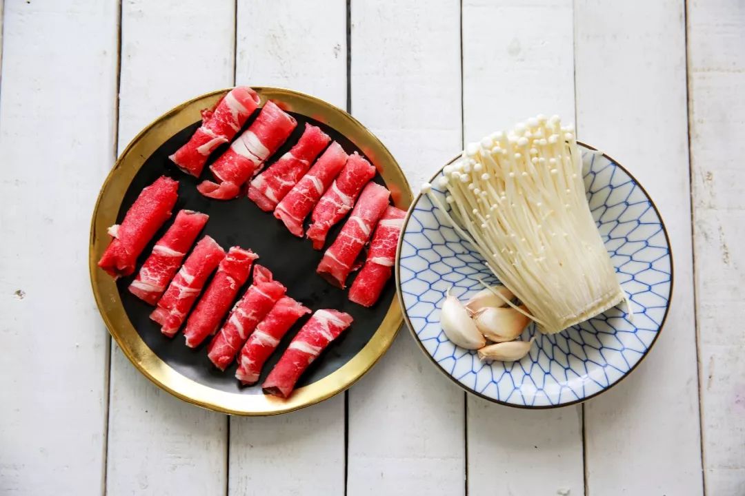 肥牛卷 200g / 金针菇 100g / 大蒜 4颗