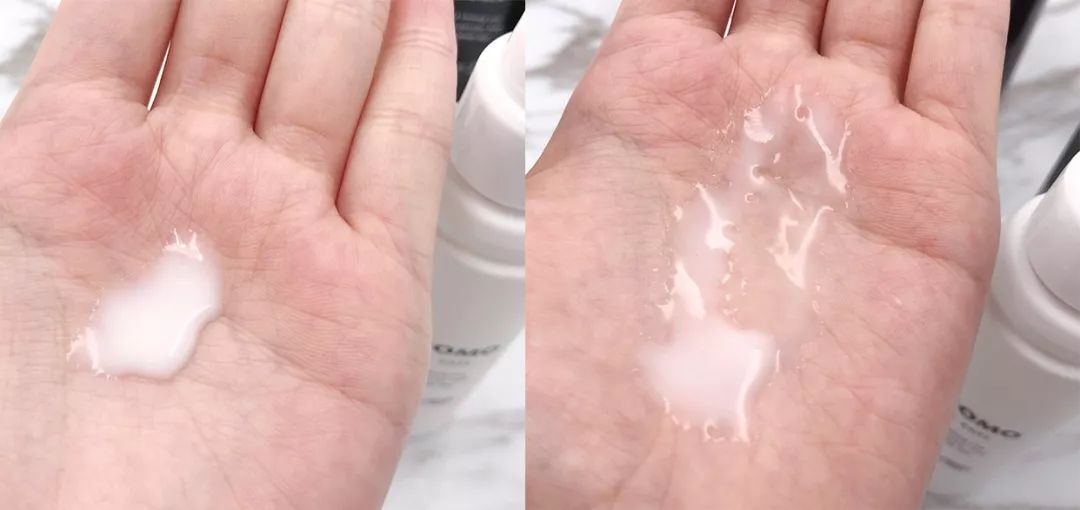 奶白色的质地有一定浓度,但是延展性非常好,清爽不粘腻,洗完头做护理无负担。