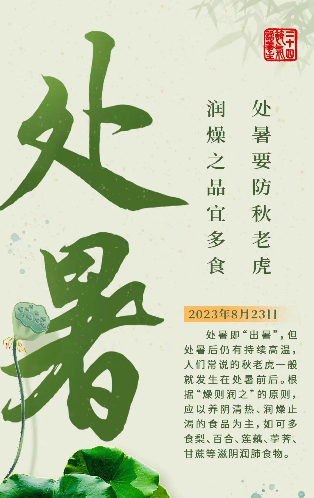 8月23日,迎来二十四节气中的处暑,也是秋季的第二个节气。《礼记·月令》中记载:“处,止也,暑气至此而止矣。”处暑的到来意味着炎热的暑天即将结束,逐渐进入真正的秋天。