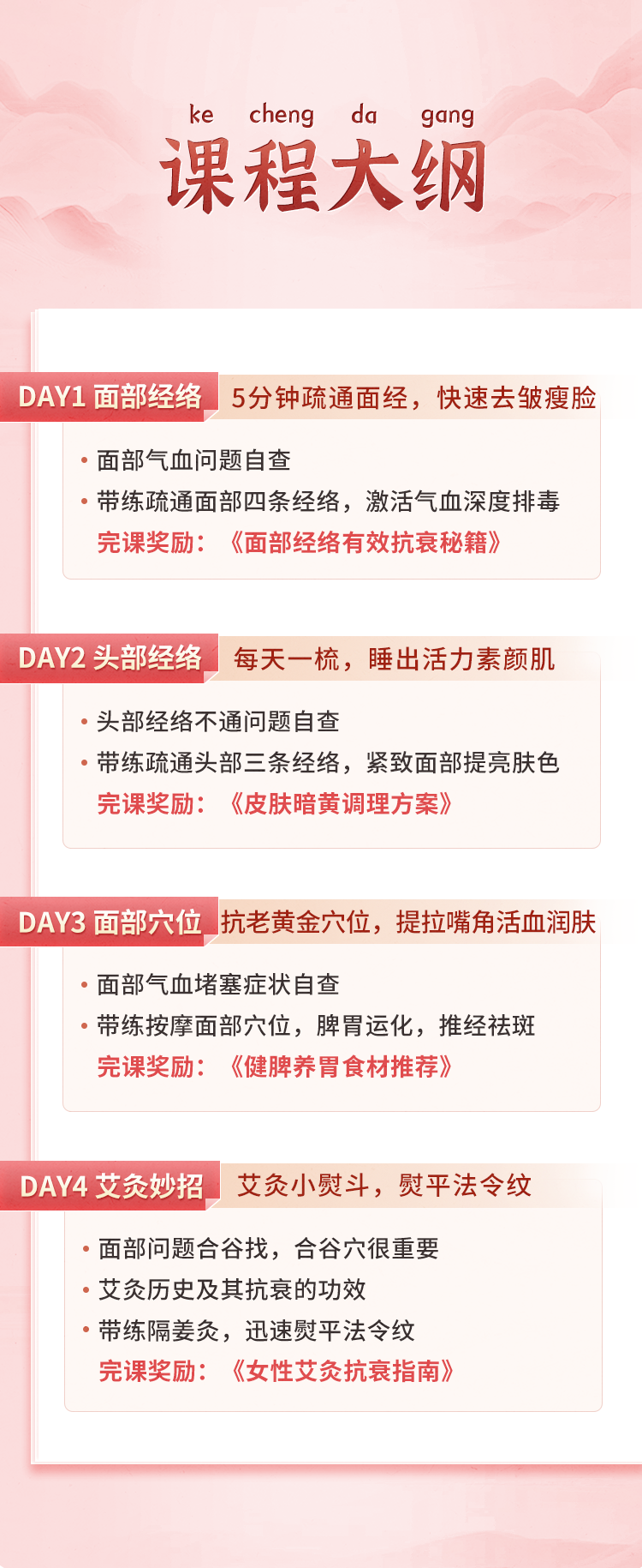 为了让大家在4天内,真正感受到身心健康调养,脸部紧致变瘦、抗衰逆龄,石今如老师将在直播中手把手教你打造好容颜。