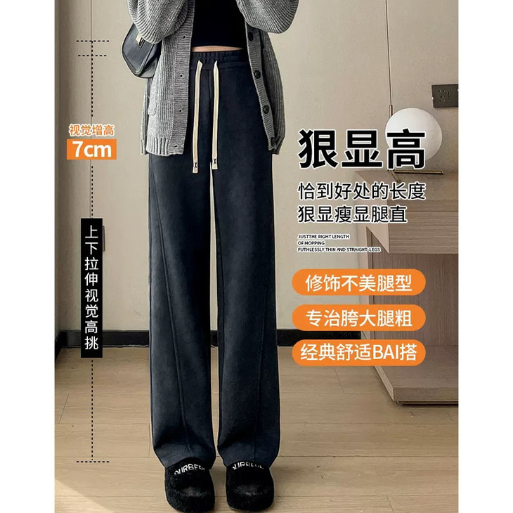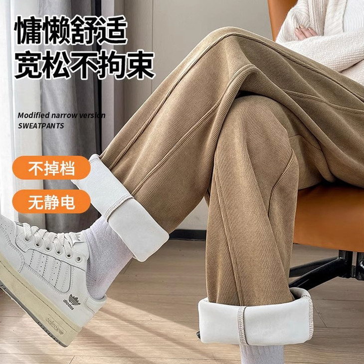 文案:窄版香蕉裤真的能穿一年四季!常规/加绒两种选择 ✌️阔腿卫裤版型穿着舒服自在,优质婴儿绒细腻亲肤,贴身像被“云”包裹一样~