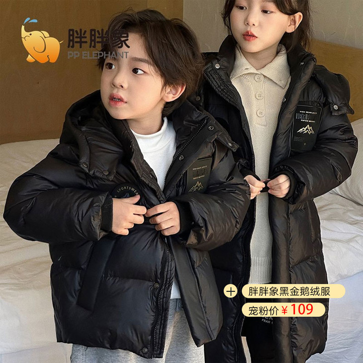 文案:扛得住零下十几度的黑金羽绒服💪90%鹅绒一件抵三件!厚实又轻盈,上身不沉重不束缚,孩子运动起来毫无压力~