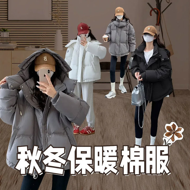 文案:简约不失设计感的韩版棉服👏羽绒棉填充轻快无负担,黑白灰三色百搭日常,袖口爱心袖标增加整体时尚感,上身完全不用担心撞衫~