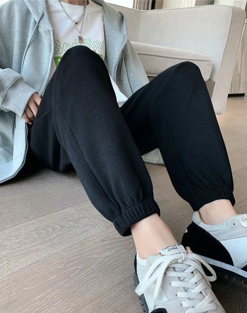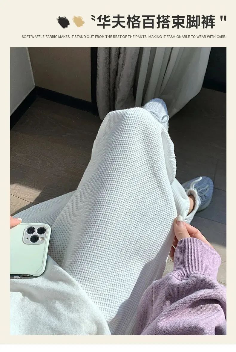限时69元2条!超火的华夫格卫裤,遮住假胯宽,拉长双腿,时尚百搭~
