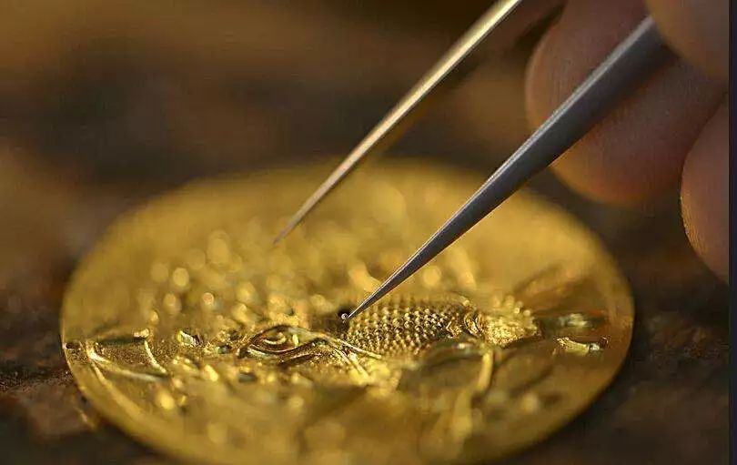 成色在99%以上的真金往硬地上抛掷,会发出叭哒声,有声无韵也无弹力。