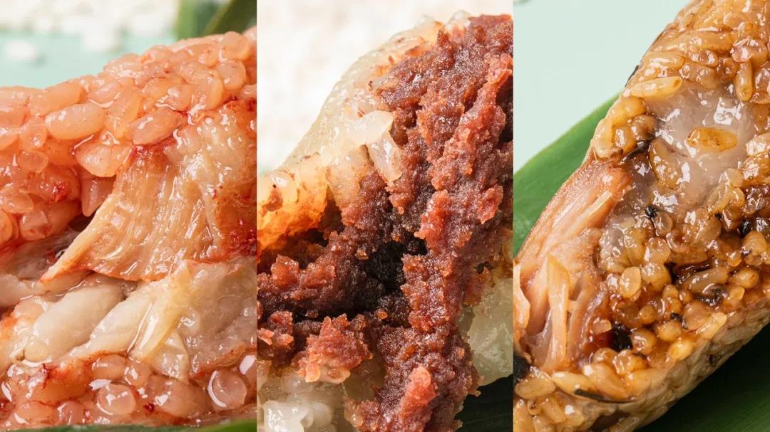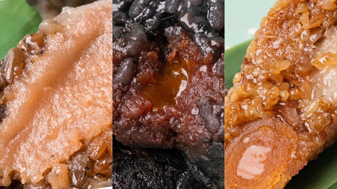 咸就咸得鲜香软糯——酱香蛋黄黑猪肉粽、酱香梅干菜黑猪肉粽、酱香腐乳黑猪肉粽。