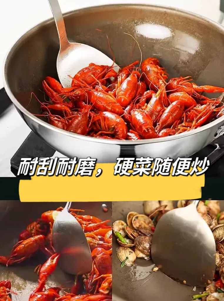 炒龙虾、炒花甲也不在话下,这是因为表面无化学涂层,全凭好用料+好工艺物理不粘。