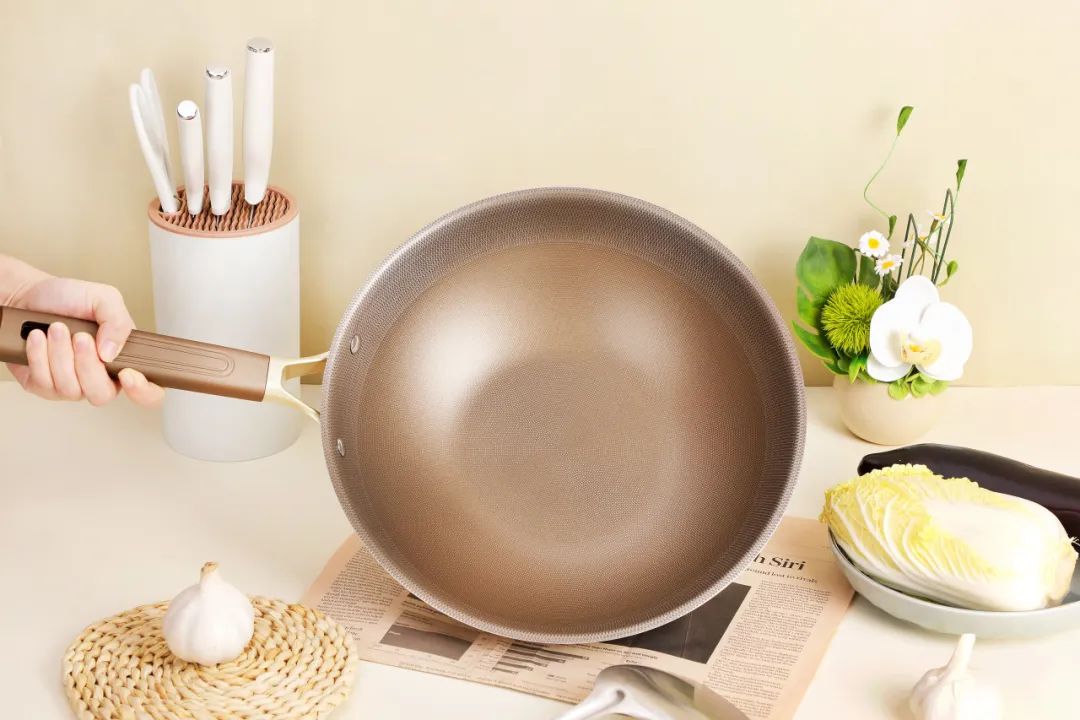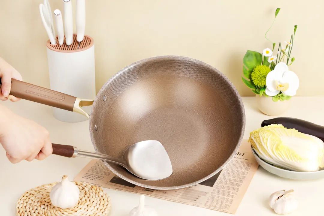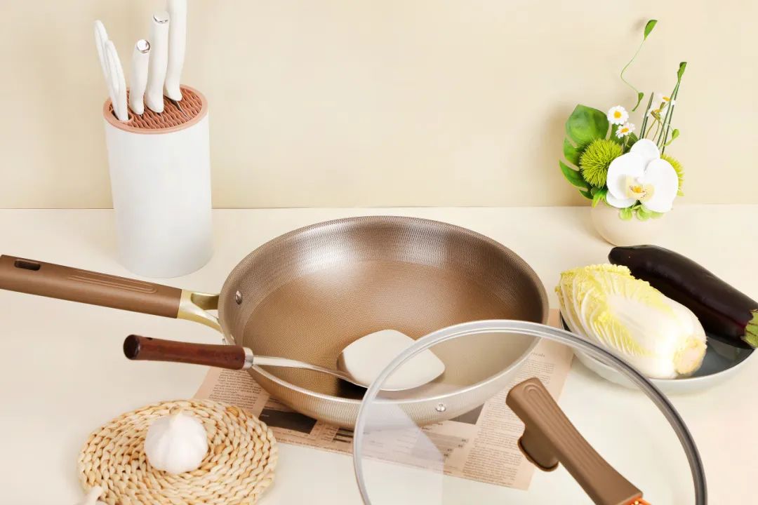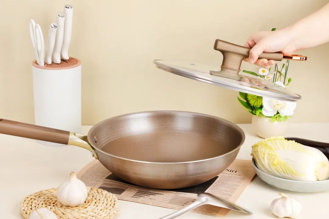 和沉甸甸的铁锅比起来,钛合金锅更轻便,颠勺也不累手,我们公司的小姐姐亲测,力气小的女生也能放心用。