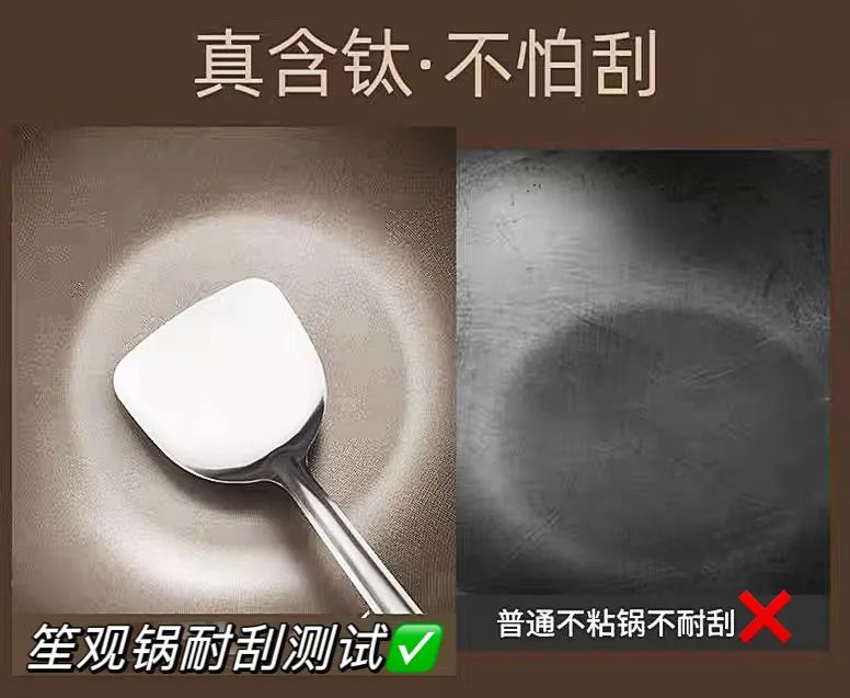 左为普通不粘锅,右为笙观钛盾锅▲