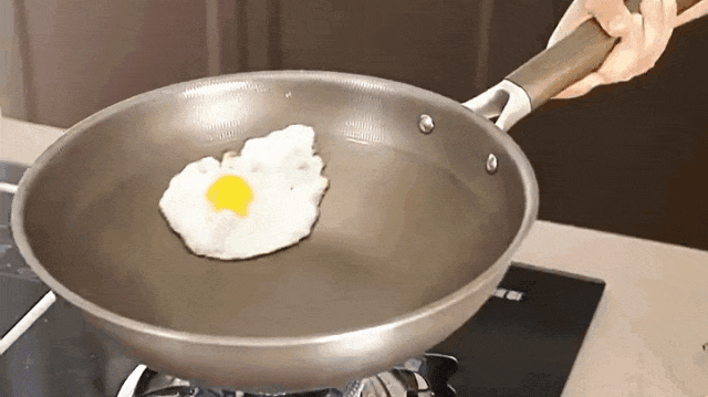 我们亲测把鸡蛋滑入锅中,凝固后,鸡蛋都能在锅里打圈