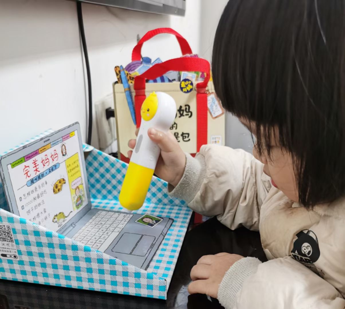 手提包里面还有一个逼真的笔记本电脑,每次我用电脑的时候亦心总会问我:“妈妈,我用什么电脑工作呢?”