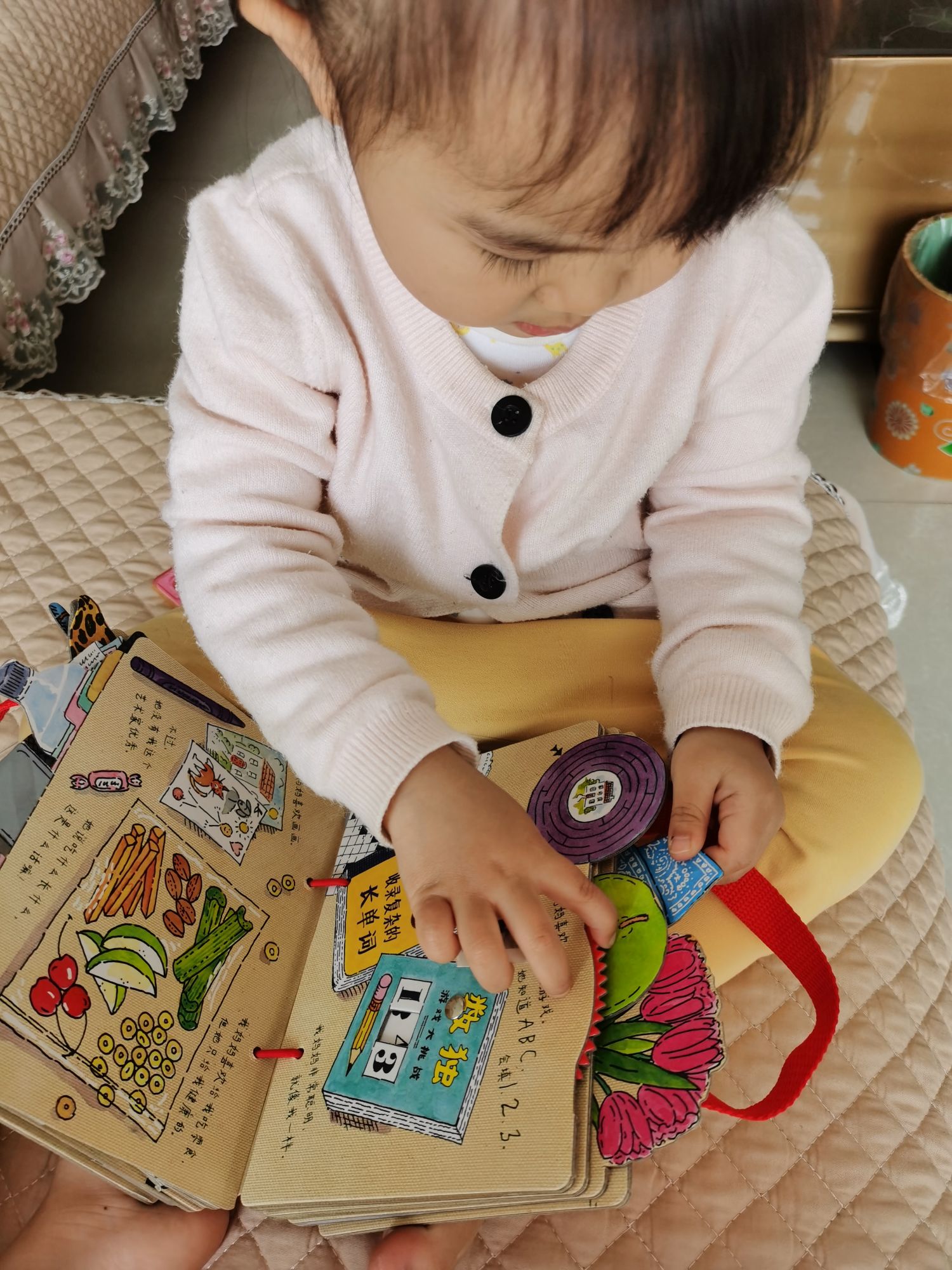这个特别的手提包里面有超过30个翻页、拉页、洞洞,充分满足宝宝爱探索,抠洞洞的习惯,训练精选动作,促进手部肌肉发育