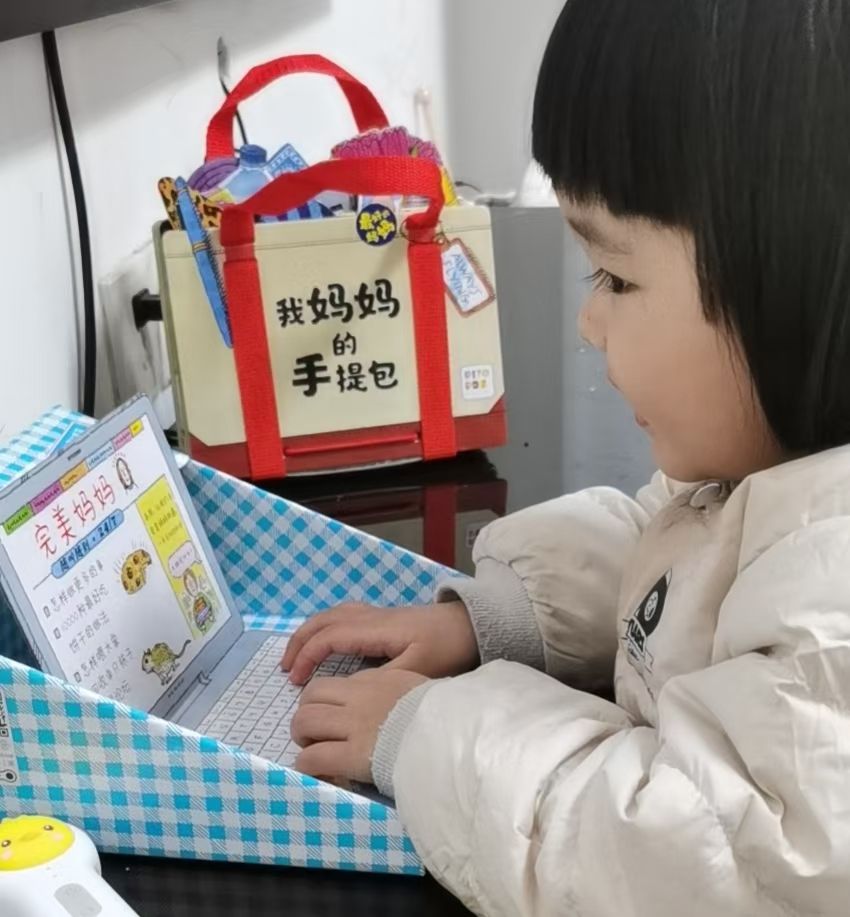 《我妈妈的手提包》:每次都有模有样的学着我用电脑的样子,还要我给她配上鼠标