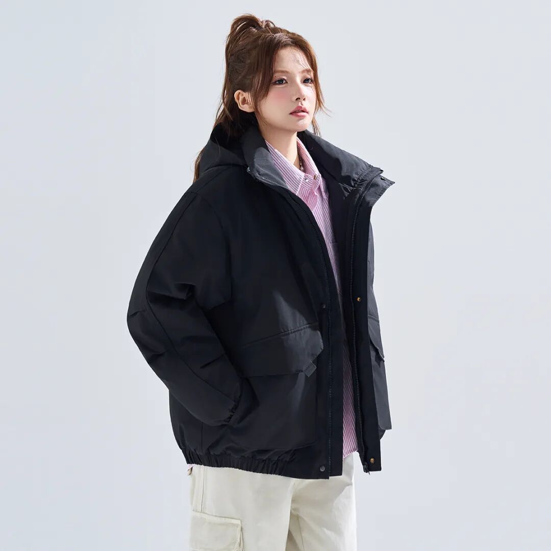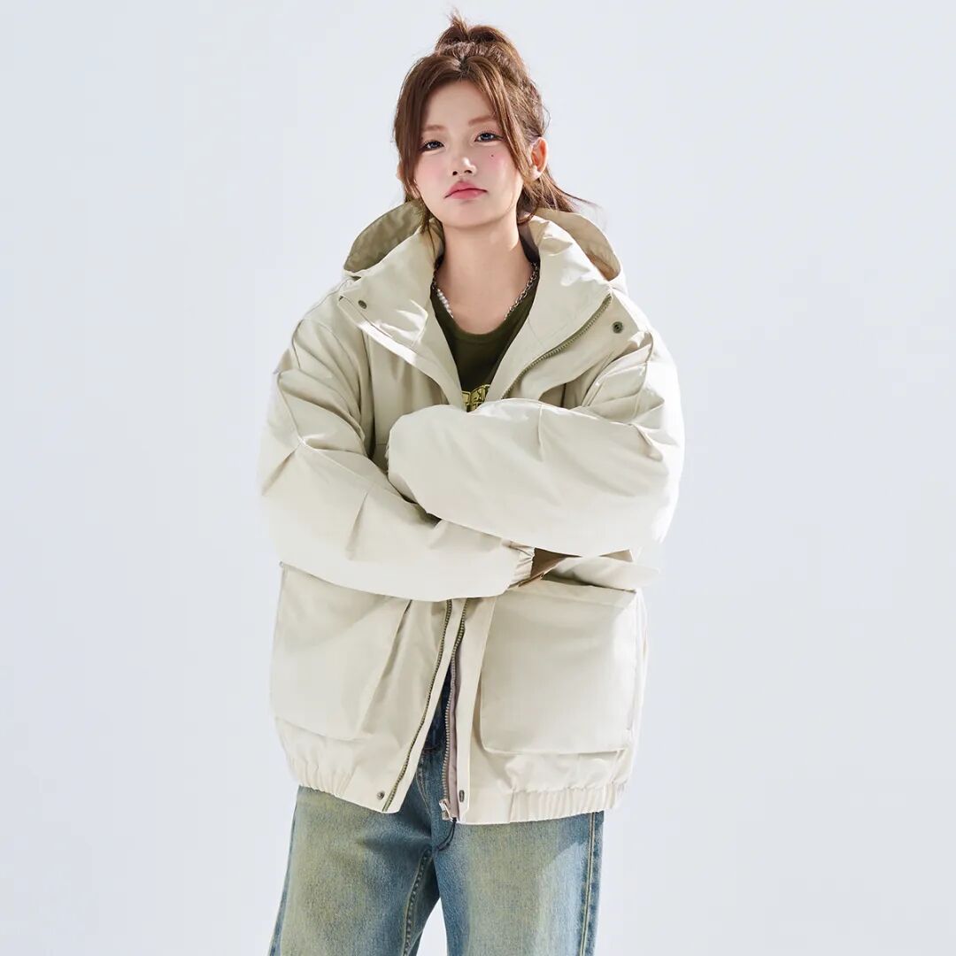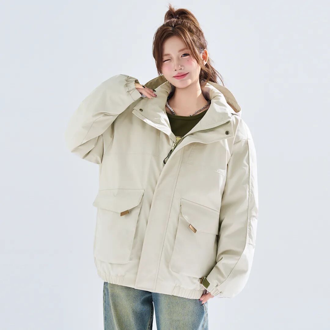 版型是宽松但不臃肿的“户外休闲款”,内搭毛衣、卫衣都舒服,男女同款,情侣穿更甜!