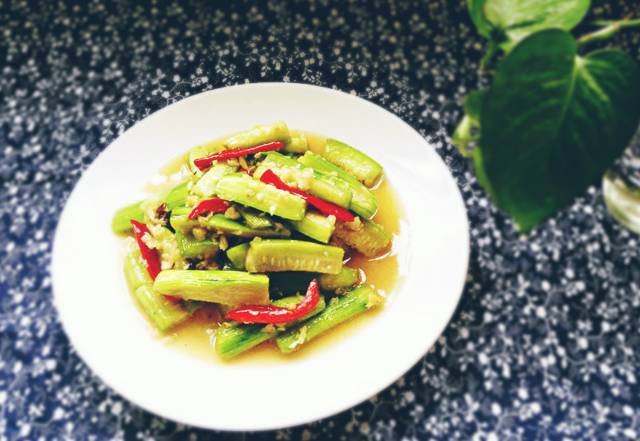 丝瓜本身是清清淡淡,加入了炒香的蒜蓉恰如带来了一份俏皮。这道菜以淡为贵,不加任何的调料,清脆香甜,吃一口就让你神清气爽!