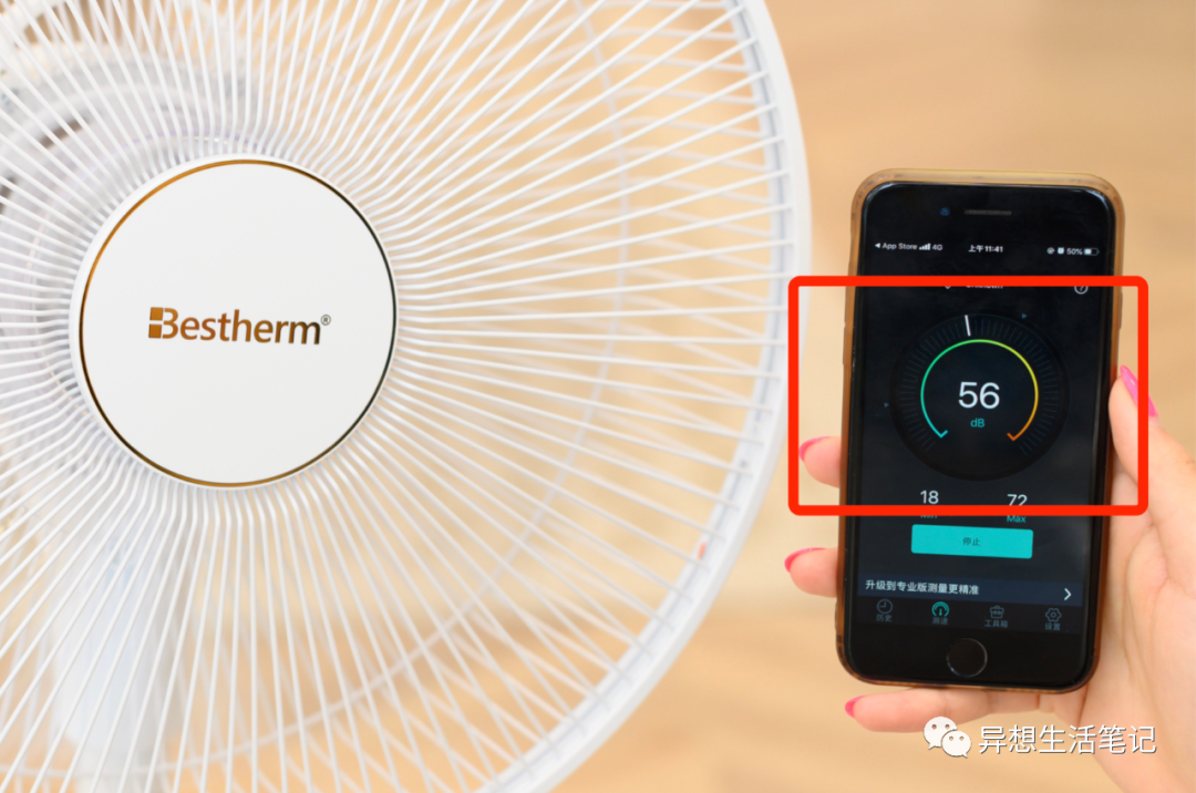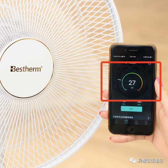 我用分贝仪测了下,不开风扇时环境音量是22分贝,开了1挡风后,音量为27分贝,只高了5分贝,真的“润物细无声”!