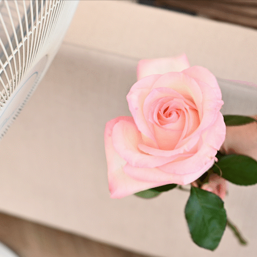 来看个对比,同样的风量,百斯腾B8吹出来的风是柔柔的,普通风扇能直接把花吹散了👇