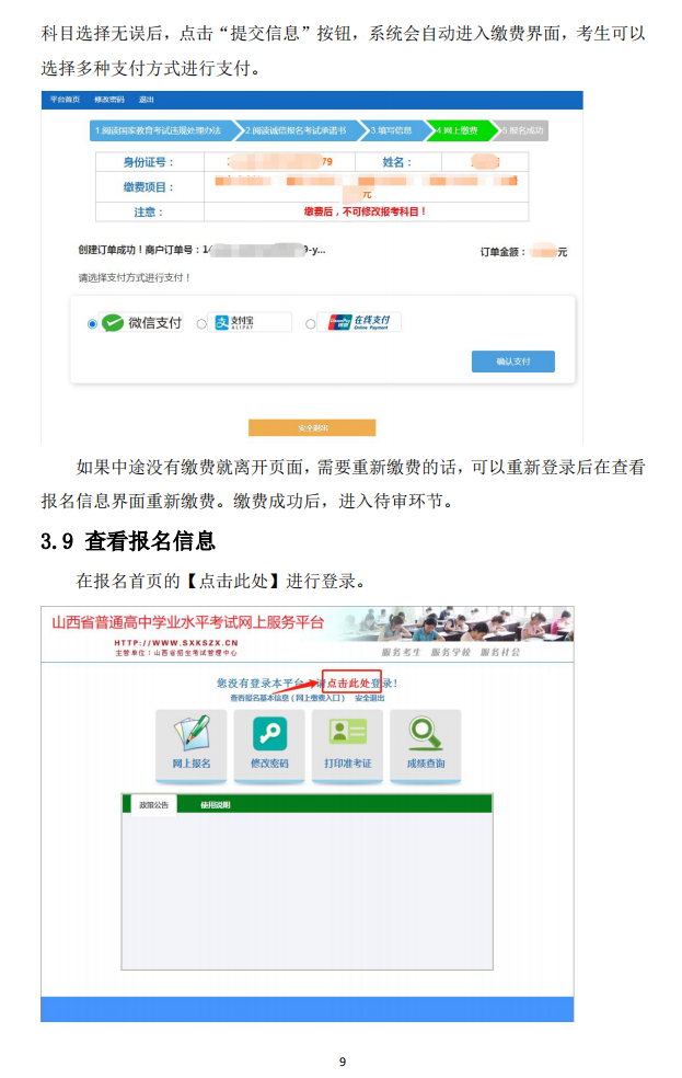 考生在提交报名信息后,须进行网上缴费。缴费标准严格按照《山西省发展和改革委员会 山西省财政厅关于规范普通高中学业水平合格性考试收费标准的通知》(晋发改收费发〔2023〕126号)文件精神执行。